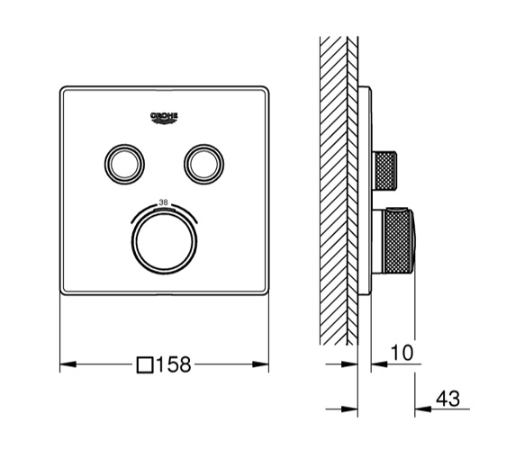 - GROHE SafeStop Plus optional temperature limiter at 43°C or 46°C included