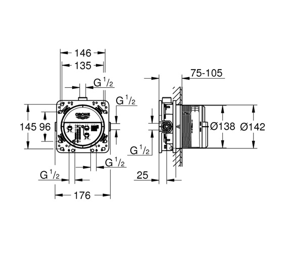 GROHE 35600000 RAPIDO SMARTBOX UNIVERSAL ROUGH-IN BOX 1/2″